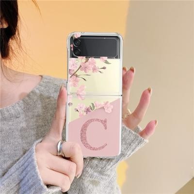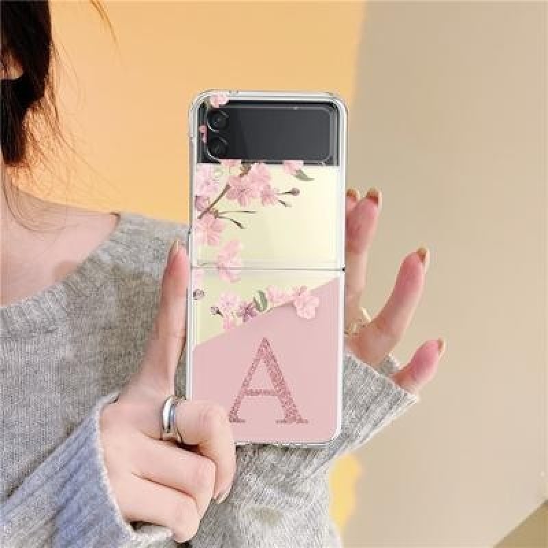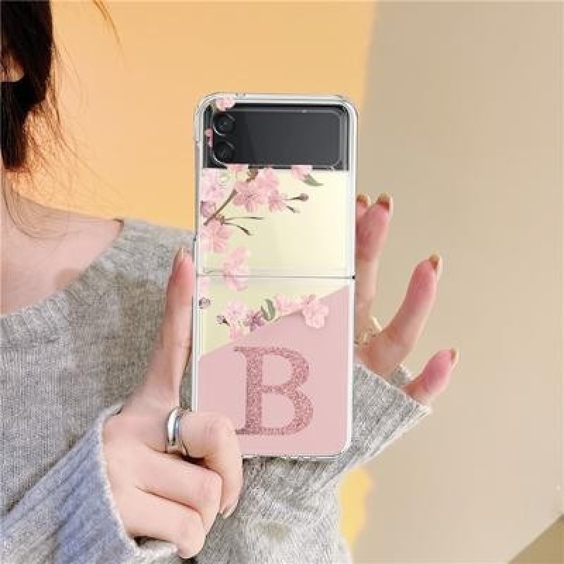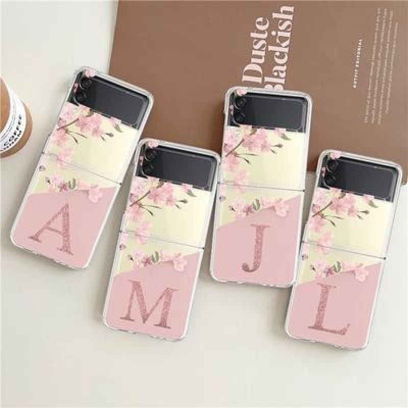 Для Samsung Galaxy Z Flip 3 4 Z Flip3 Flip4 Чехол Вишневый цветок Начальный алфавит Прозрачный жестк