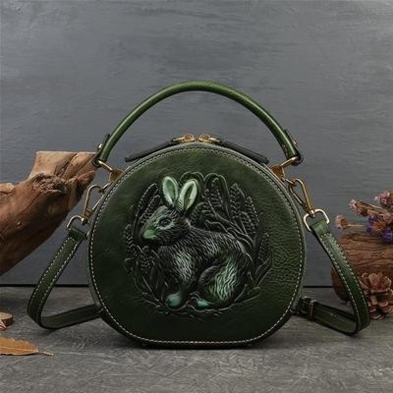 Кролик Тисненая сумочка Подлинная кожа Ретро Женская сумка Универсальная Настоящая Коровья кожа Сумк