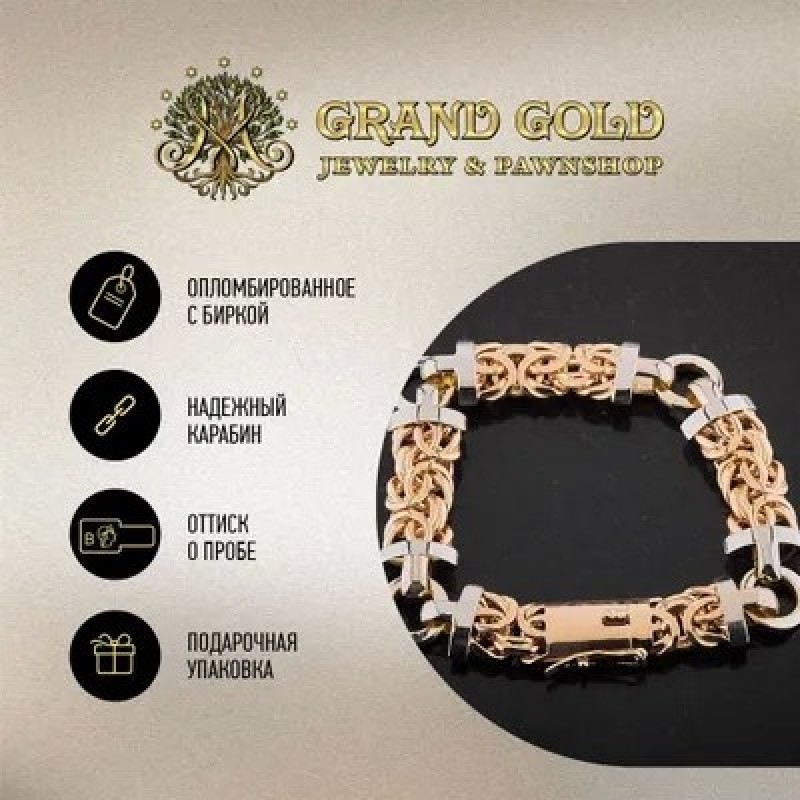 GRAND GOLD Браслет Византийского плетения из комбинированного золота полновес Золото 585 Размер 20,5 ₽39950.0 |