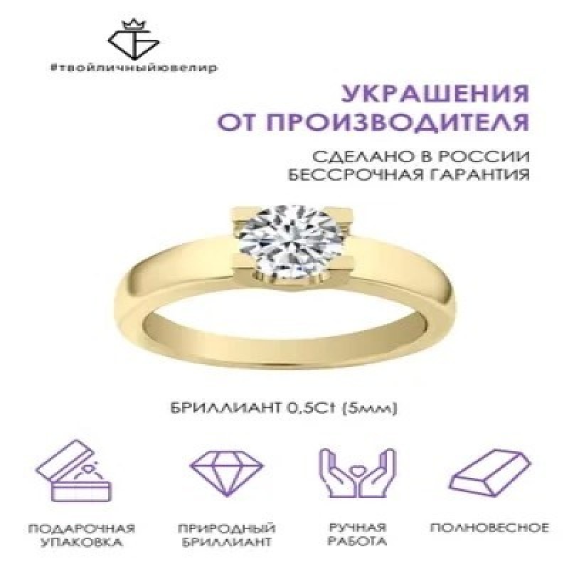 Кольцо золотое с бриллиантом помолвочное женское 585 пробы ТВОЙЛИЧНЫЙЮВЕЛИР ₽66000.0 |