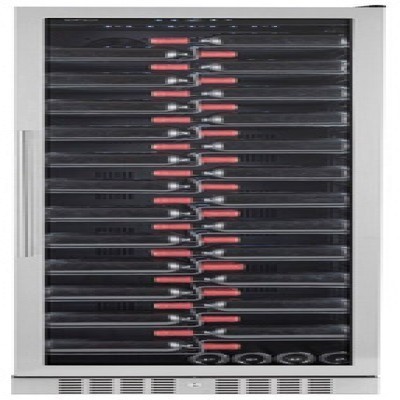 Общие данные:Размеры:высота: 183,5  смширина: 65,5 смглубина: 68 смОбъем: 490 лМаксимальное количество бутылок: 143Тип управления: электронныйКлиматический класс: N (от +16°C до +32°C)Класс энергопотребления: FГодовое энергопотребление (кВт*ч): 128Цвет корпуса: ЧёрныйЦвет дверцы: Нержавеющая стальКоличество температурных зон: 1Диапазон температур: 5-20°СТип системы охлаждения: компрессорныйВинное отделение:Полки: 12Подсветка (белая)Винный шкаф оборудован вентиляторами, которые обеспечивают циркуляцию воздуха. Конденсат в винном шкафу используется повторно и, таким образом, поддерживает оптимальную влажность, а фильтр с активированным углем обеспечивает свежий и чистый воздух в холодильнике для вина.Дополнительная информация:Винный шкаф оборудован специальными полками,  которые элегантно демонстрируют винные бутылки и этикетки вашей коллекции.Стеклопакет дверцы заполнен аргоном, что существенно снижает теплопотери, а УФ-фильтр защищает вино от вредных ультрафиолетовых лучей, которые могут проникнуть внутрь холодильника.Светодиодная подсветка находится сбоку для лучшей подсветки этикеток.Об охлаждении винного шкафа заботится тихий компрессор с низким уровнем шума и меньшим потреблением электроэнергии. Компрессор не только бесшумный, но и опирается на наши специально разработанные ножки, которые защищают вино от вредных вибраций.Замок двериХладагент: R600a Уровень шума (дБ): 40