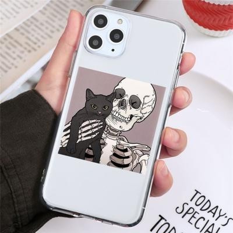 Череп Симпатичный кот Прозрачный чехол для телефона для iPhone 13 12 11 XS Samsung Galaxy A52s A70 A
