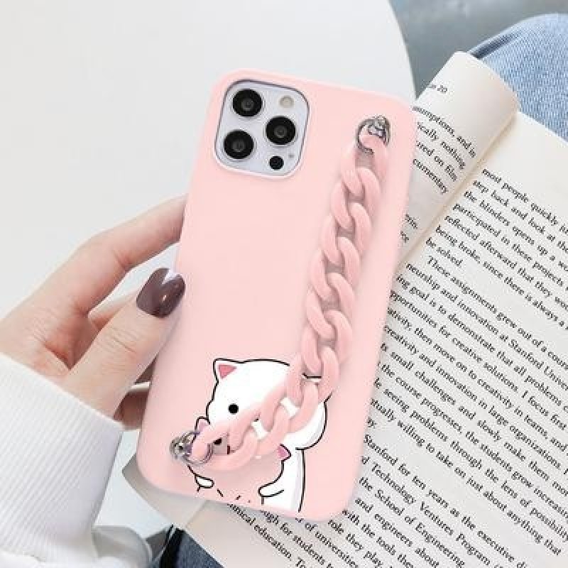 Симпатичные чехлы для телефона Cat с цепочкой для iPhone 12 11 Pro 8 7 6 Plus 5 SE 2020 X XR XS Max